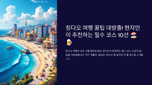 칭다오, 중국의 아름다운 해안 도시를 소개합니다. 이곳은 독일 식민지 시대의 영향을 받은 건축물과 아름다운 해변, 그리고 맛있는 음식으로 유명합니다. 칭다오는 매년 많은 관광객들이 찾는 인기 여행지로, 다양한 매력을 가지고 있습니다. 이번 포스팅에서는 칭다오의 주요 관광지, 음식, 여행 팁, 액티비티, 추천 일정을 자세히 알아보겠습니다.